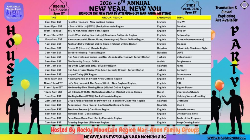 If your group is interested in leading a meeting, email newyearnewyou@naranonrm.org
